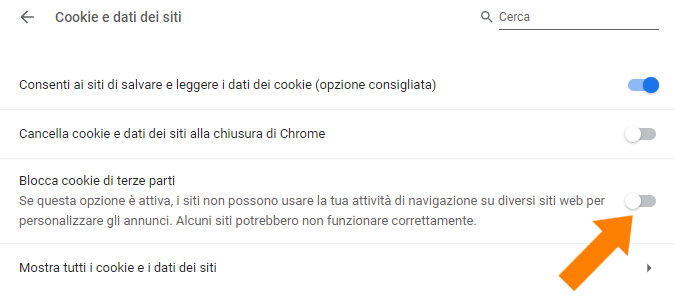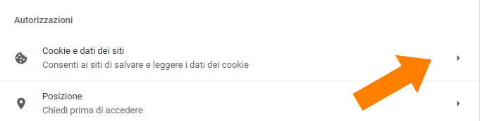 A questo punto nella pagina centrale le saranno comparse nuove voci, da qui deve selezionare “Impostazioni Sito” e poi “Cookie e dati dei siti”