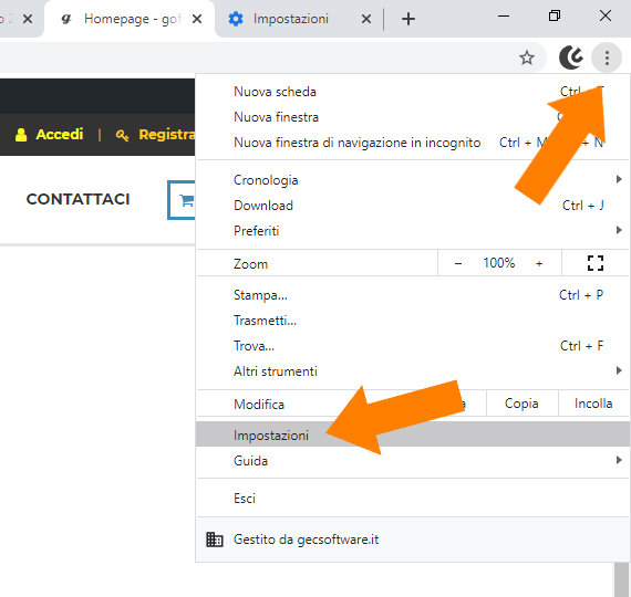 - Dalla pagina di Google Chrome cliccha sui tre puntini in alto a destra e selezioni la voce “Impostazioni”;