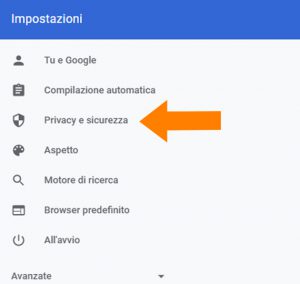 2. Dal menù di sinistra selezioni la voce “Avanzate” e poi “Privacy e Sicurezza”